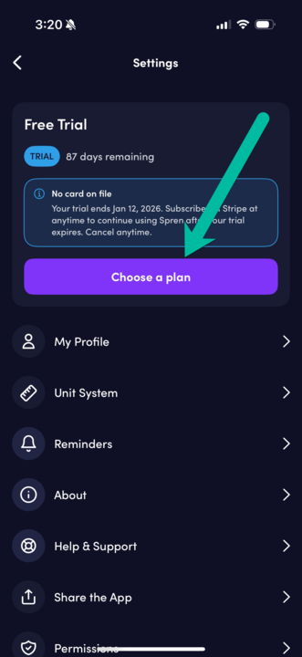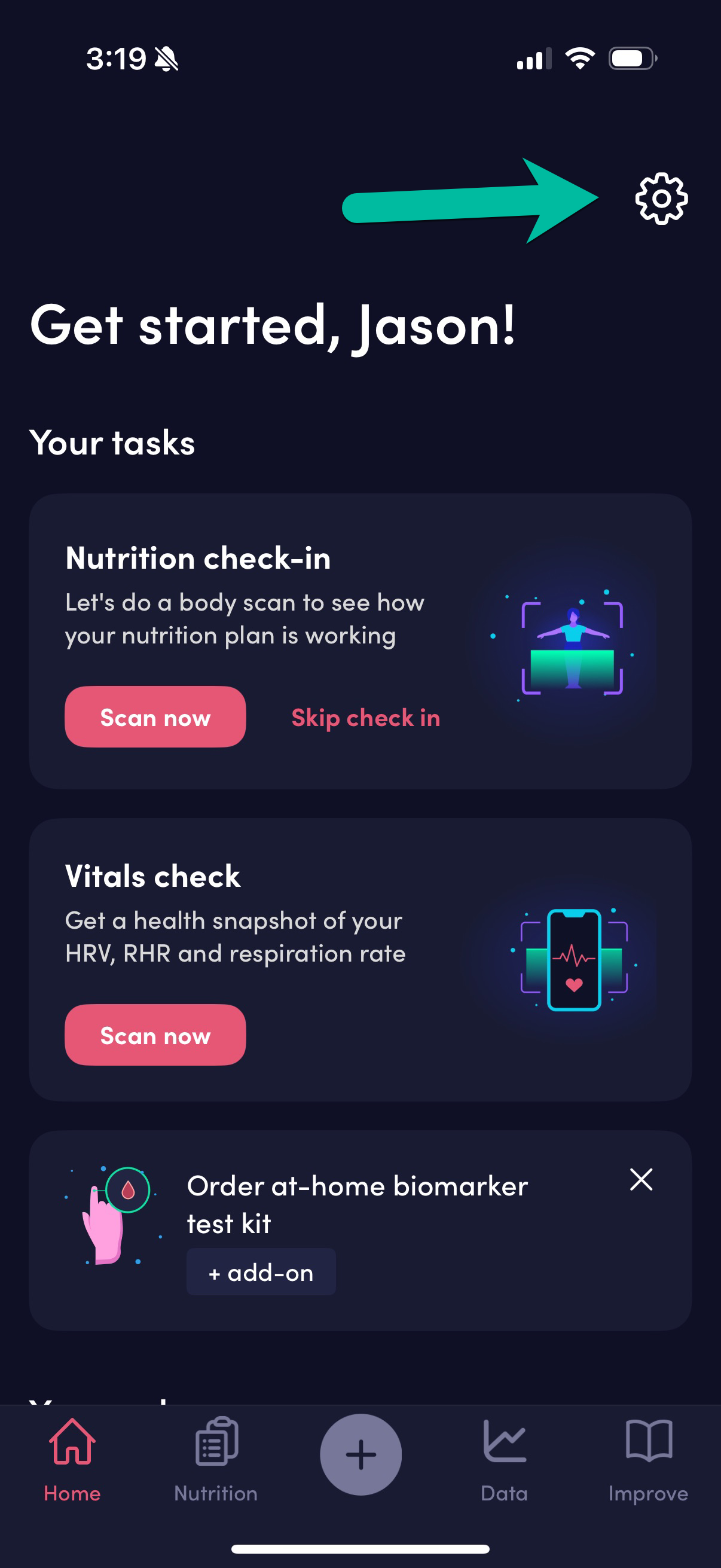 - Open the Spren app to the home screen. Tap the gear icon in the top right corner.