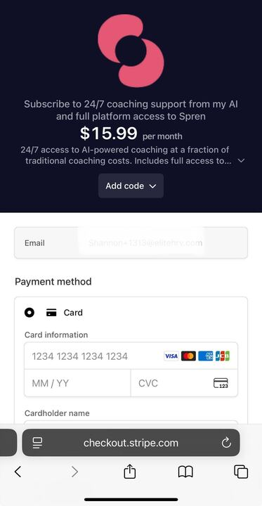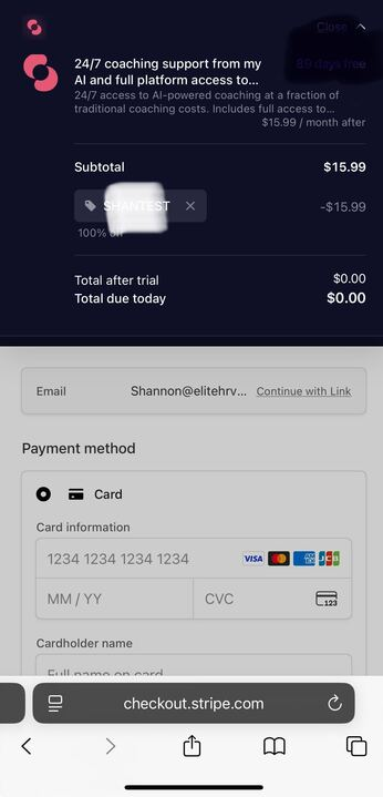 - Once the code processes and the adjusted rate is reflected, tap on checkout.stripe.com