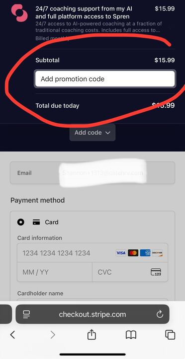 If you run into issues with your coupon code, please try again or contact getsupport@spren.com for assistance.
